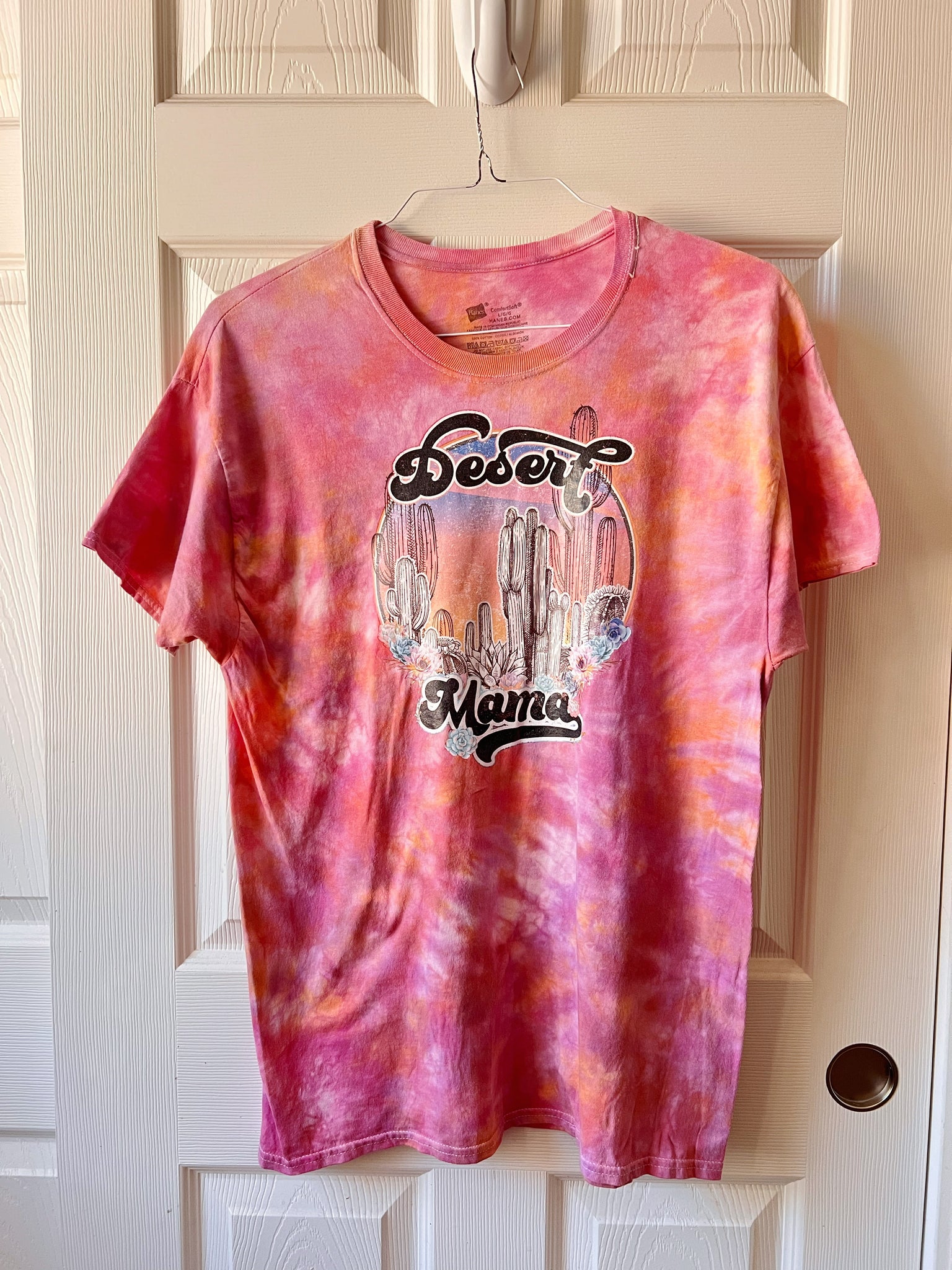 Hand dyed with procion reactive tie dye & finished with a heat pressed screen print