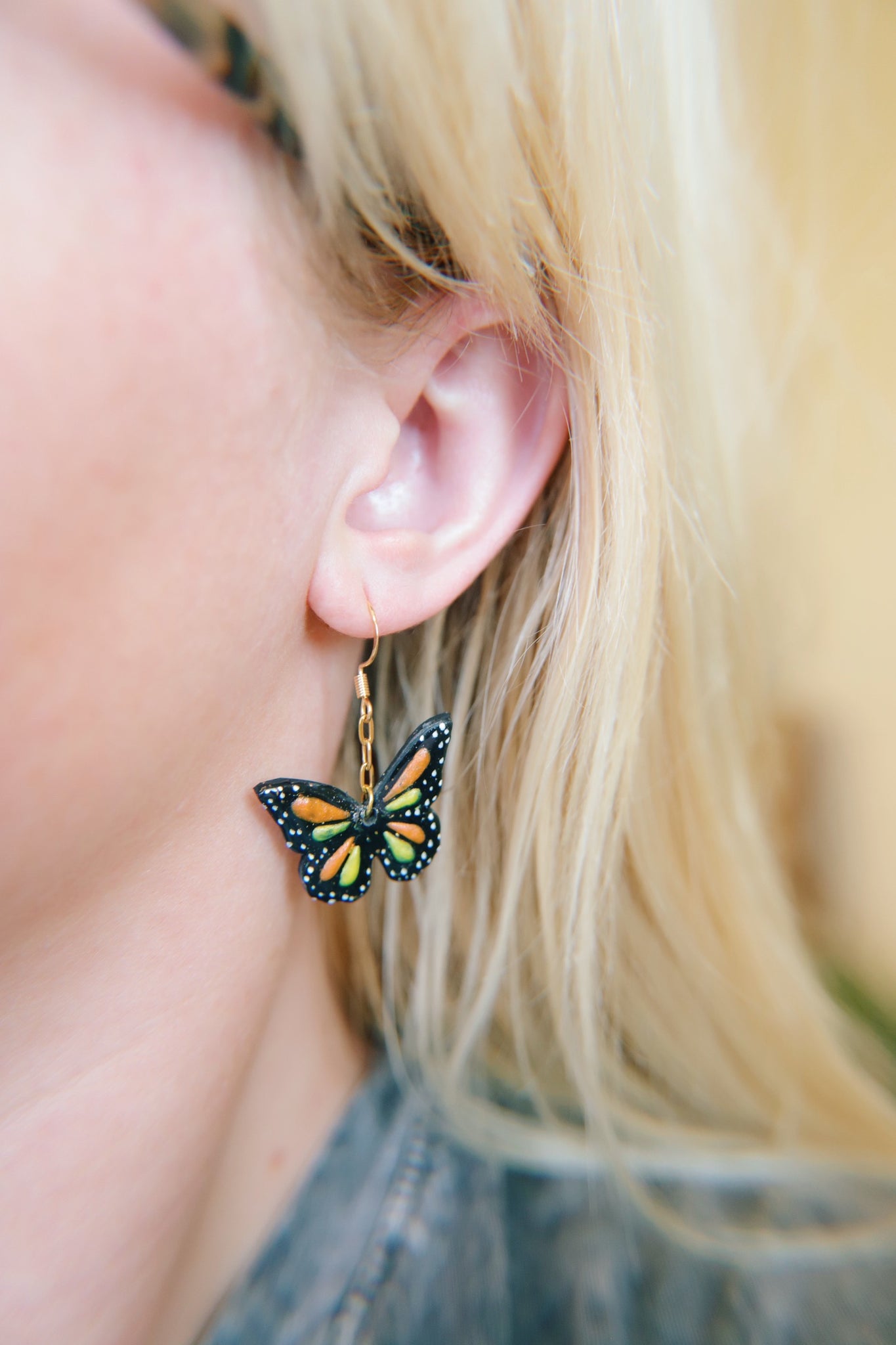 Hand Painted Monarch Butterfly Polymer Clay Earrings